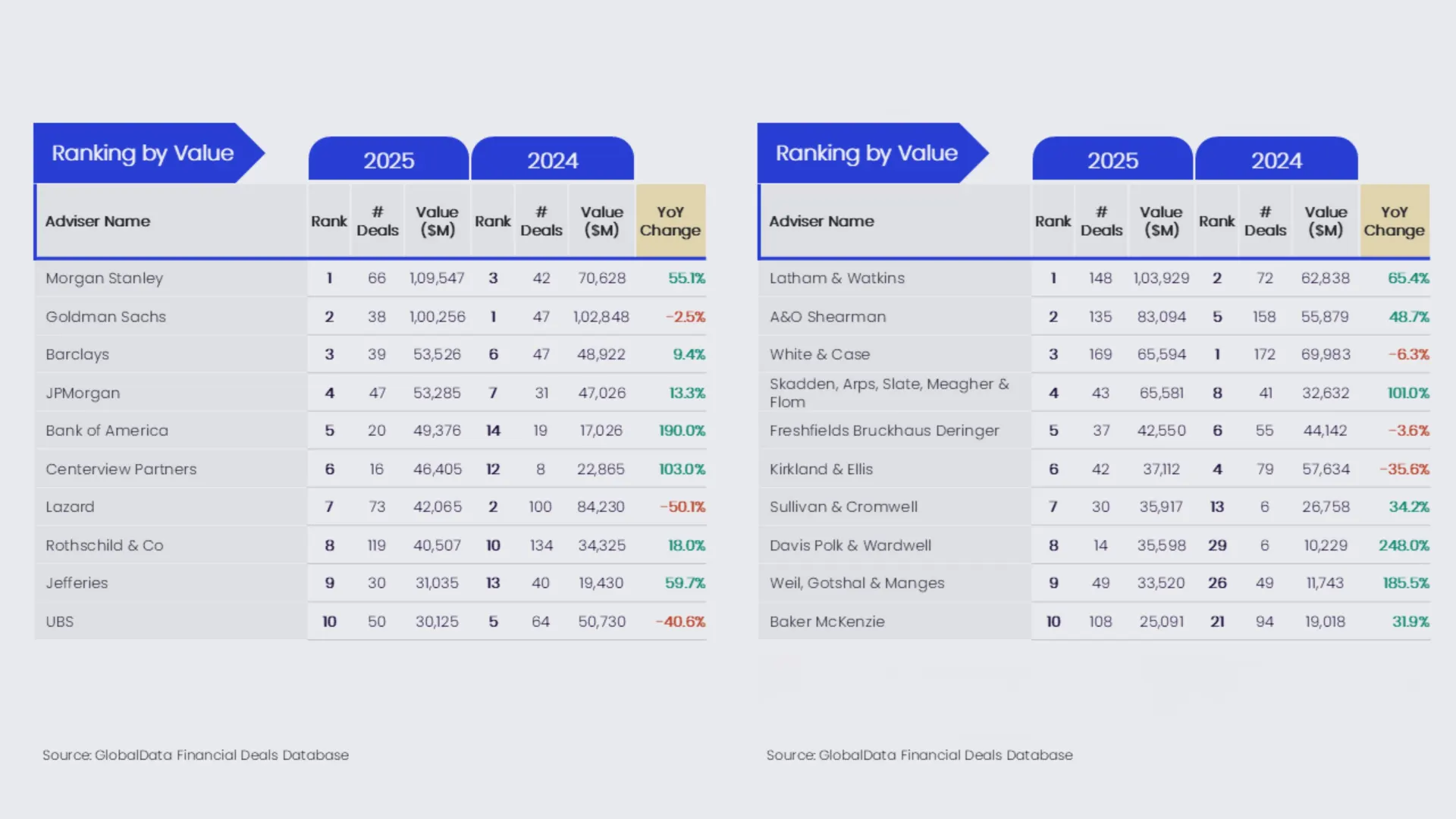 GlobalData ha annunciato gli ultimi aggiornamenti alle sue classifiche dei consulenti finanziari e legali, che classificano i consulenti in base al valore totale e al volume delle operazioni di fusione e acquisizione (M&A) su cui hanno prestato consulenza nella regione europea nel corso del 2025.