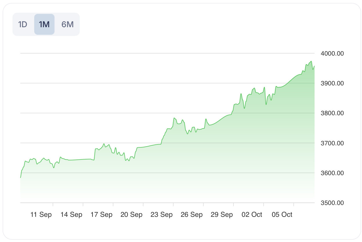 Gold is currently valued at 3956.975, having reached a year high of 3977.4. The SPDR Gold Shares ETF (GLD) price stands at 364.38. Key support is at 350.00, with resistance near 375.00 for the ETF proxy. The 50-day moving average of 360.00 acts as a dynamic support, while the RSI at 45 signals neutral to slightly bearish momentum. The prevailing trend is classified as STRONG_LONG, implying upward momentum in the short term.