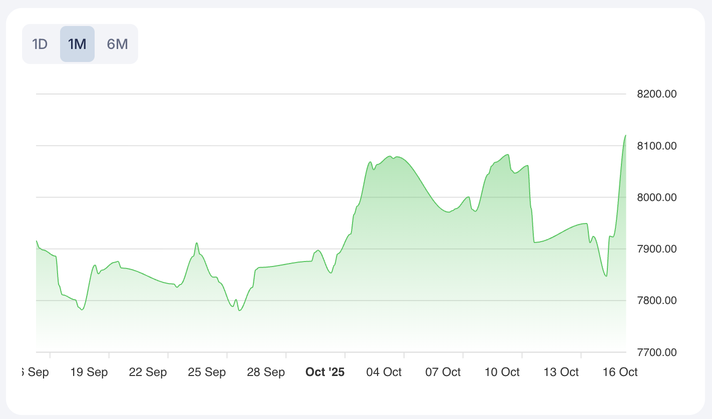 The main European indices are exhibiting resilience and upward momentum amid robust earnings and macroeconomic optimism. The DAX Performance Index (^GDAXI) is trading at 24288.31, up 0.21195, signaling fresh all-time highs. The CAC 40 (^FCHI) has surged to 8119.57, a 2.52474, reflecting a significant boost from the luxury sector. The FTSE 100 (^FTSE) stands at 9433.56, slightly down by -0.20322, but remains close to record highs. The IBEX 35 (^IBEX) is up at 15671.8, advancing 0.54791. The Euro STOXX 50 (^STOXX50E) currently trades at 5631.98, up 1.43965, benefiting from a strong upward trend. These movements suggest that European equities continue to attract buyers, particularly in sectors with positive earnings momentum. Most index micro-trend signals are classified as FLAT, except for the Euro STOXX 50, which shows a STRONG_LONG trend—indicating potential leadership in the region’s risk rally.