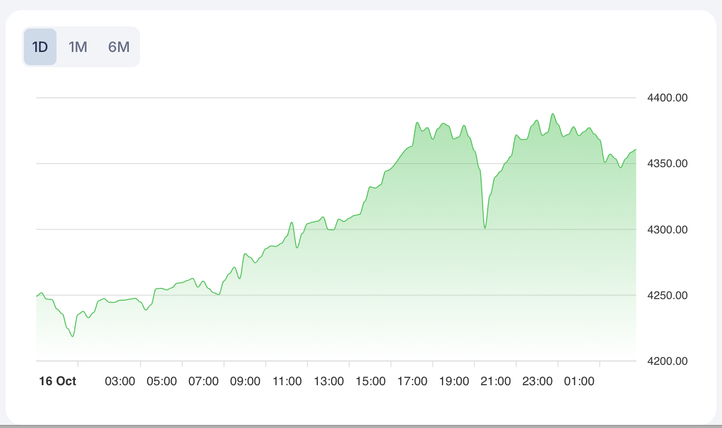 Gold (XAU/USD) has surged to a record high, recently quoted at 4344.29 per ounce. Technical support is identified at 4000 and resistance at 4200, with a 50-day moving average of 3500. RSI readings near 70 indicate strong overbought momentum, and the prevailing strong long trend underscores robust bullish continuation in the short term.