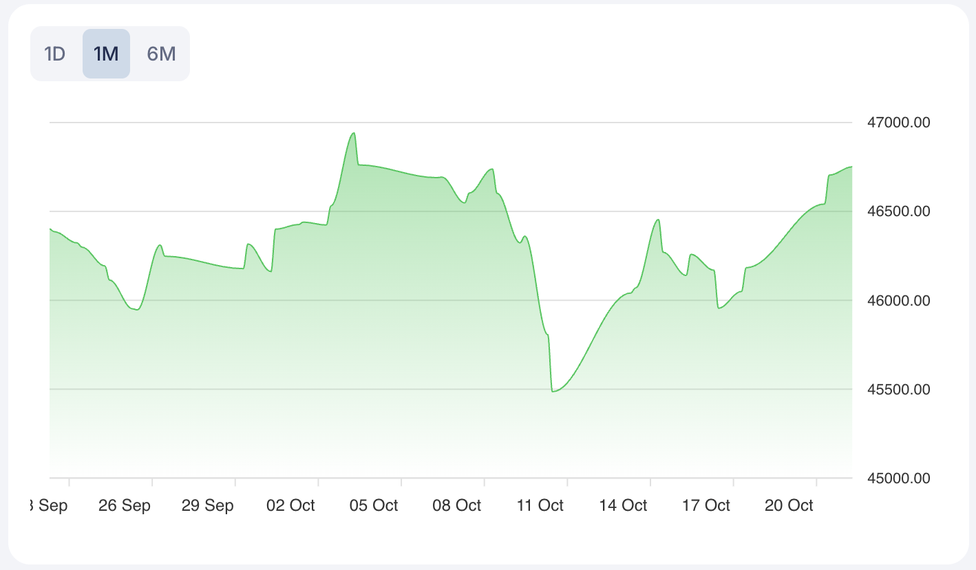 The major U.S. equity indices are displaying stability near all-time highs, reflecting a cautiously optimistic market mood. The Dow Jones Industrial Average (^DJI) is trading at 46736.81, up 0.06% for the session, signaling minor upward momentum. The S&P 500 (^GSPC) sits at 6729.14, registering a modest decrease of 0.09%, and is now just 0.3% off its record high. Meanwhile, the NASDAQ Composite (^IXIC) is slightly lower at 22926.72, down -0.27%, reflecting some rotation out of high-growth technology stocks. The S&P 500 is showing a strong short-term sell signal, indicating caution is warranted despite the index’s resilience. Both the Dow and NASDAQ are exhibiting flat micro-trend signals, suggesting a period of consolidation as markets digest recent gains.