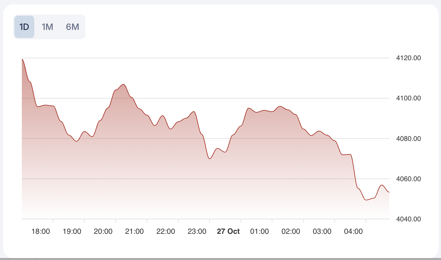 Gold (XAU/USD, GC=F) continues its historic rally, recently trading at 4041.18 per ounce, with futures benchmarks at 4137.80. The price remains well above its 50-day and 200-day averages, supported by a strong long trend and an RSI near 70, indicating overbought but still bullish momentum. Key resistance is at 4210.25, with support at 4113.53. The prevailing technical outlook favors further upside if global risk sentiment remains fragile.