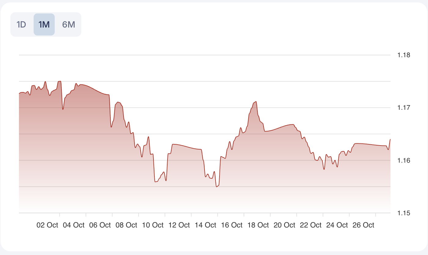 The EUR/USD pair is currently trading at 1.16478, reflecting a marginal decline of -0.03776111. This movement suggests subdued price action, with the pair hovering near recent support zones.