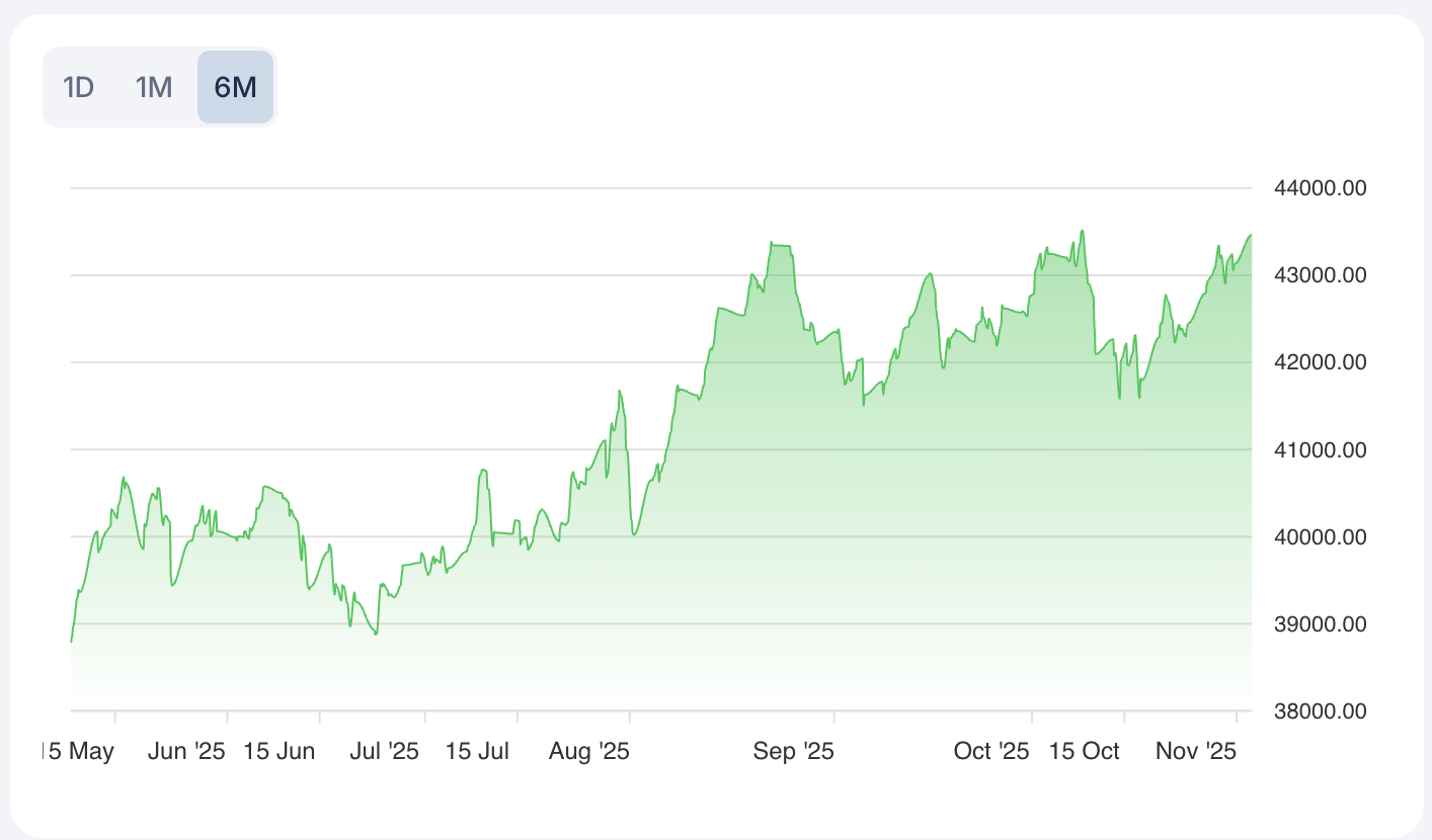 Major European indices are maintaining elevated levels, trading at or near their annual or all-time highs, reflecting strong institutional support and persistent confidence in blue-chip equities. The FTSE MIB Index (FTSEMIB.MI) is currently trading at 43439.75, with a daily gain of 0.61246 and a pronounced strong-long technical trend, signaling robust momentum and persistent buying interest, particularly in Italian equities. The DAX Performance Index (^GDAXI) is at 24102.26, showing a gain of 0.60088 but exhibiting a flat micro-trend, which suggests investor caution and near-term consolidation after recent advances.