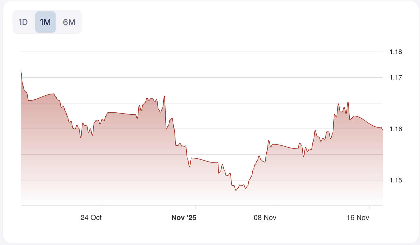 Current Quote: The EUR/USD is trading at 1.15956, showing a slight negative move with a changesPercentage of -0.22716. This modest downside indicates pressure on the Euro, though the trend remains influenced by both ECB policy and Eurozone data.