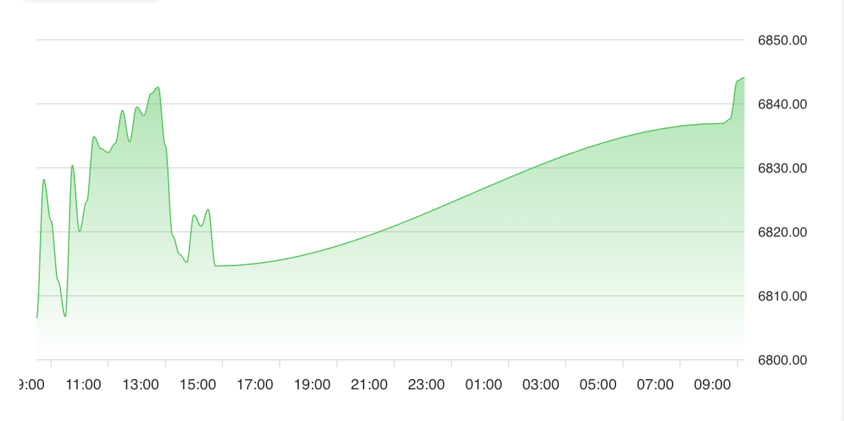 - S&P 500: ~6,830–6,831 (up ≈ +0.3% on the open today after a one-day pullback). Latest close/open reference and recent daily prints show the index trading in the low 6,800s.