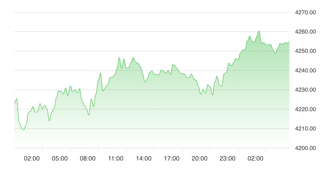 Gold is trading at 4.22K per ounce, well above its 50-day moving average 4.1K and 200-day moving average 3.59K, confirming robust technical momentum and a sustained bullish trend. The RSI is near 70, indicating the market is overbought and may enter a period of consolidation. The prevailing micro-trend is STRONG_LONG, suggesting that the short-term path of least resistance remains upward, though intermittent pullbacks or consolidation could follow recent gains.
