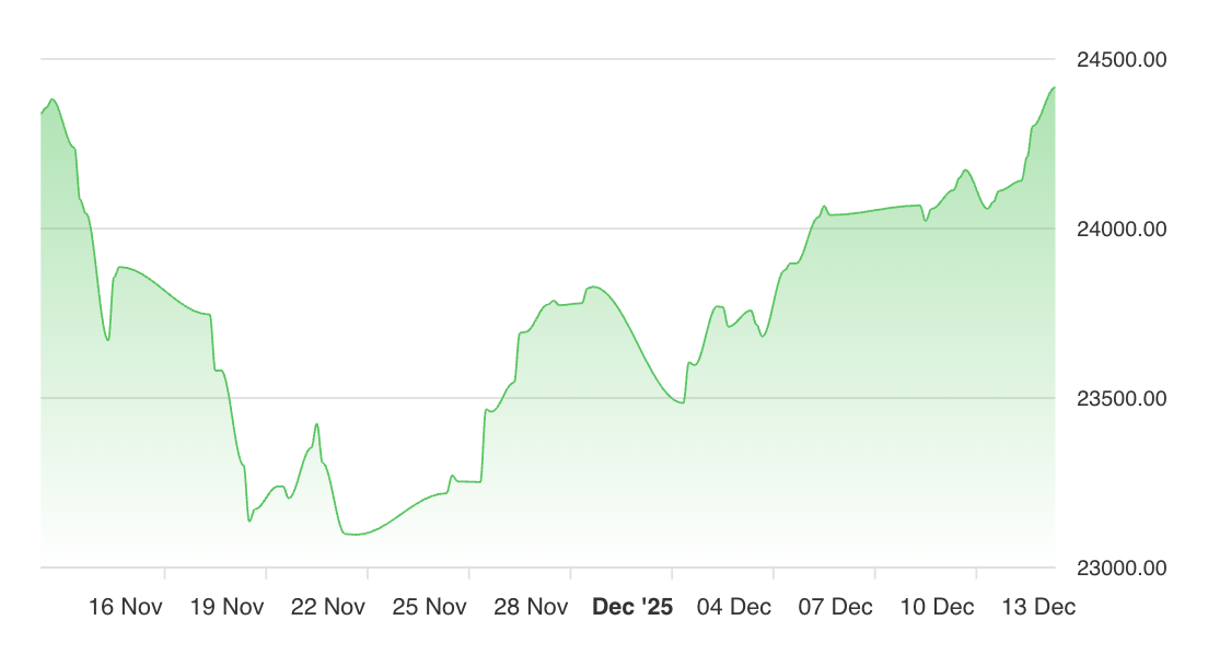 The DAX Performance Index (^GDAXI) is quoted at 24.41K, up by 117.78 with a FLAT short-term trend, reflecting consolidation as German blue chips digest recent gains and global trade uncertainties.