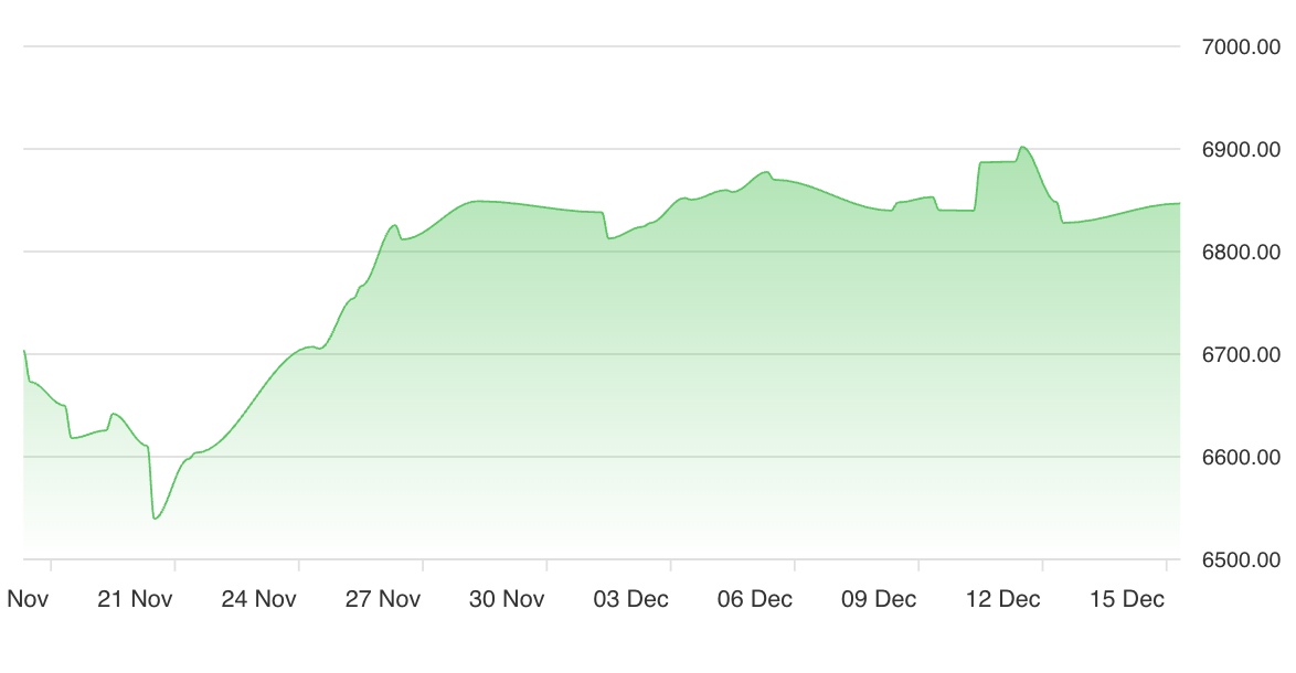 The major U.S. indices are trading just below their recent record highs, demonstrating both resilience and tentative caution as markets digest a confluence of economic and sector-specific signals. The S&P 500 6.84K is up modestly by 0.25, trading above both its 50-day (6.76K) and 200-day (6.21K) moving averages, confirming a structurally bullish backdrop. However, technical signals point to a STRONG_SHORT micro-trend, indicating heightened risk of short-term profit-taking as markets reassess after a powerful rally.