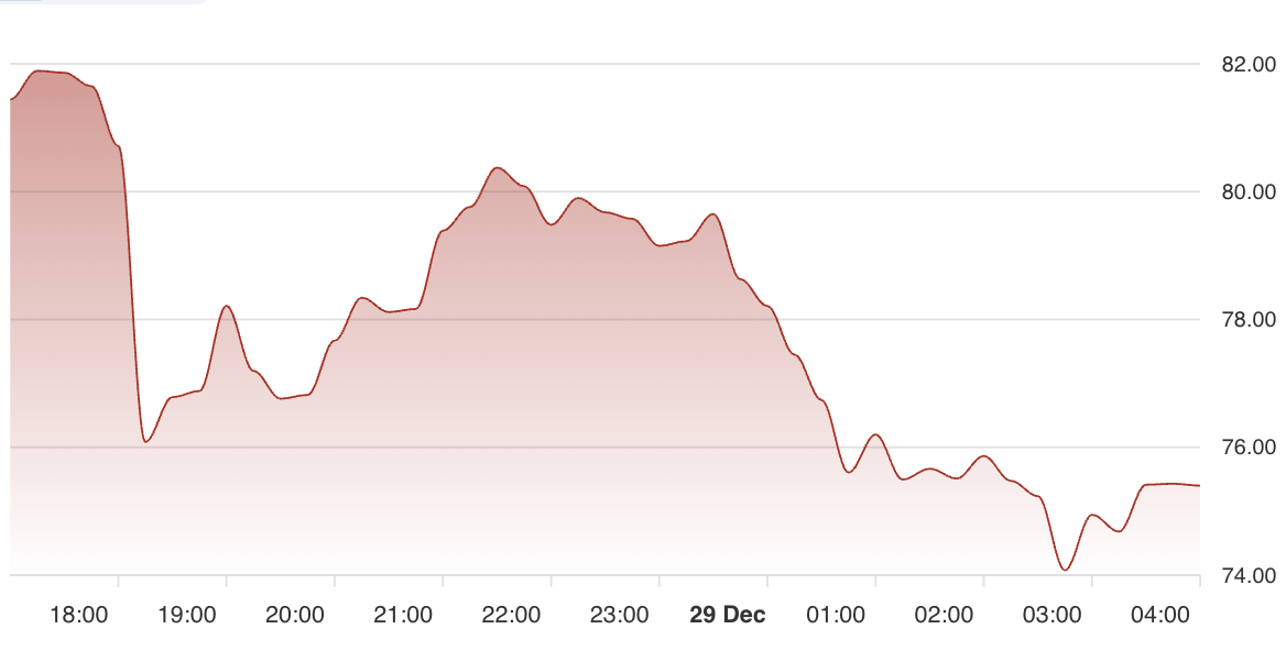 Silver is priced at 75.48 per ounce, standing significantly above its 50-day average of 57.44 and 200-day average of 44.19. Despite a recent pullback, the flat micro-trend indicates a likely consolidation phase after significant gains, with a constructive medium-term bias due to ongoing investor and industrial demand. Silver’s technical strength is reinforced by its dual role as a safe-haven and industrial metal.