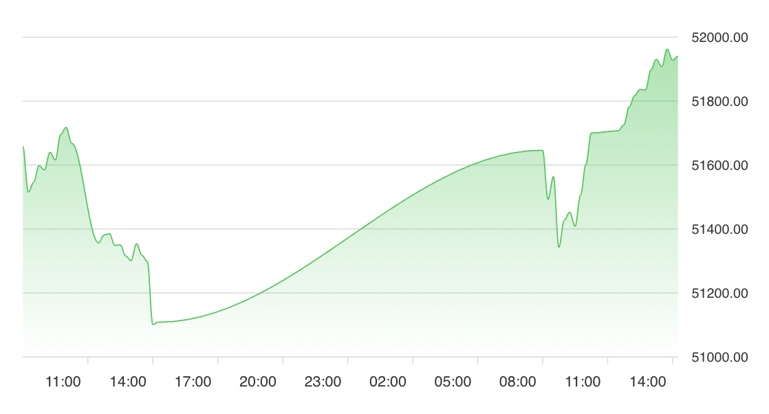 The main Asian indices demonstrate a predominantly positive trend, with the Nikkei 225 (^N225) leading the region. The Nikkei 225 is trading at 51.94K, marking a substantial gain of 1.61. This advance is attributed to robust performance in heavyweight stocks, notably Fast Retailing, which surged over 7% on strong earnings and an upwardly revised outlook. The Nikkei's close to its all-time high signals strong bullish sentiment and ongoing capital inflows.