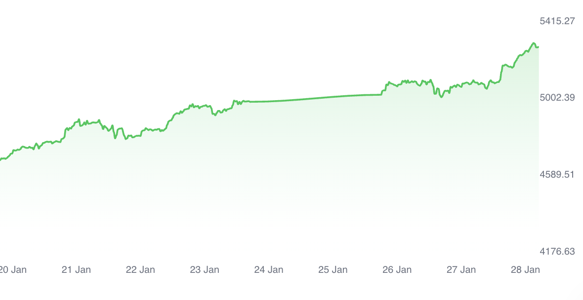 Gold breaks $5,200 amid dollar slump and geopolitical tensions; Oil prices diverge after storm disruptions
