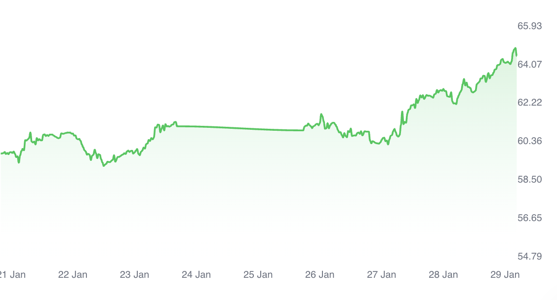 Oil prices hit four-month highs as Brent nears $70 and WTI tops $64 on escalating U.S.–Iran tensions.