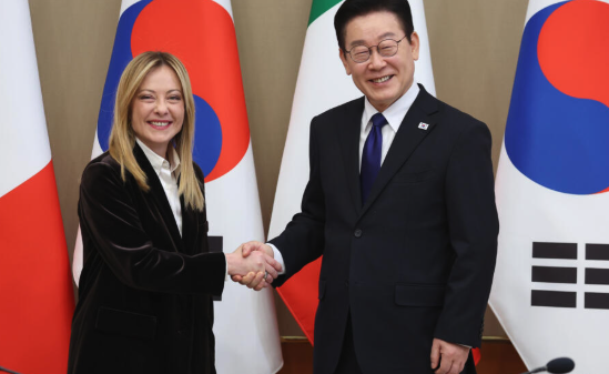 President Lee Jae Myung hosted Prime Minister Giorgia Meloni for the summit at his office in the first visit by an Italian leader to South Korea in almost two decades.